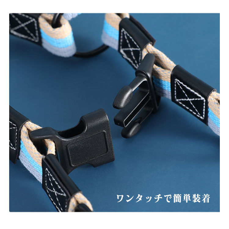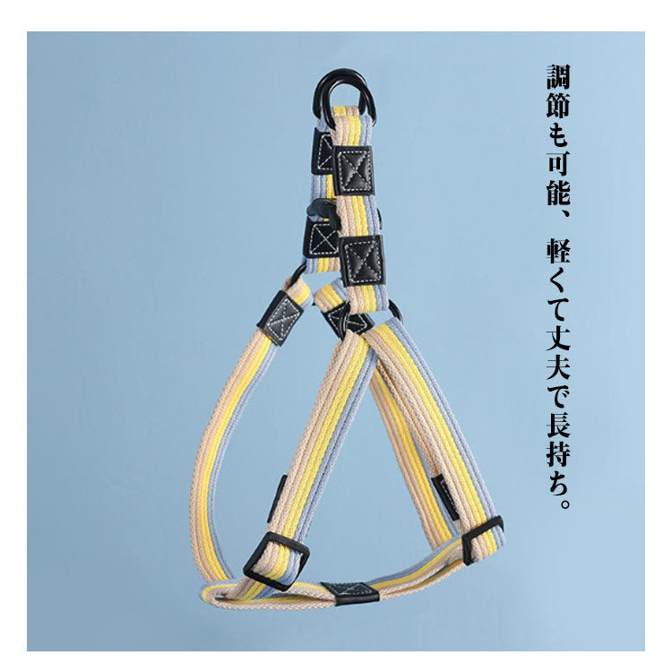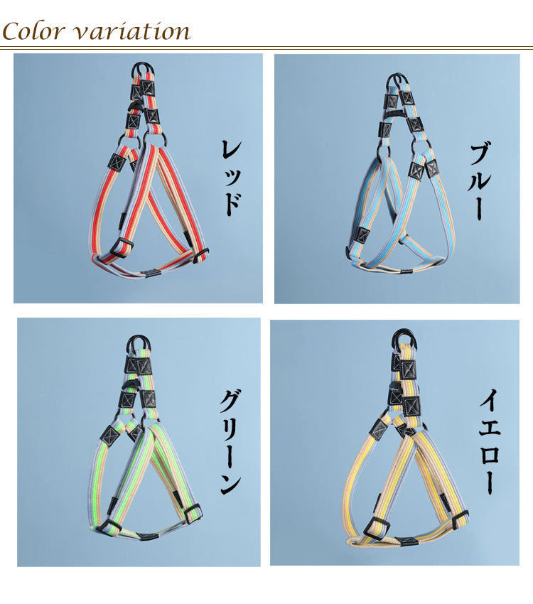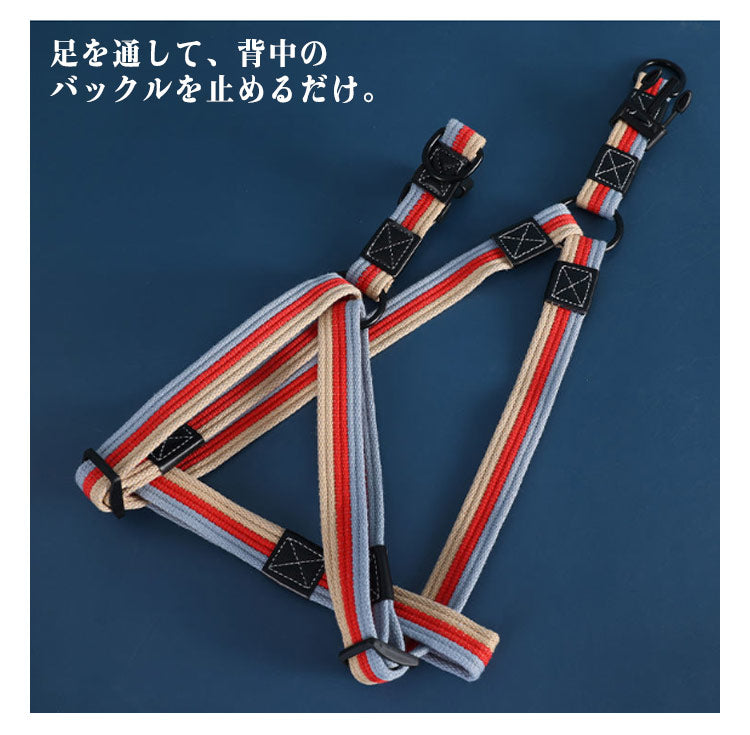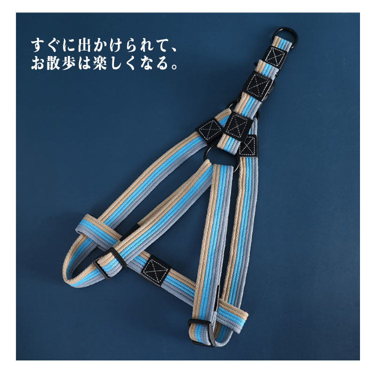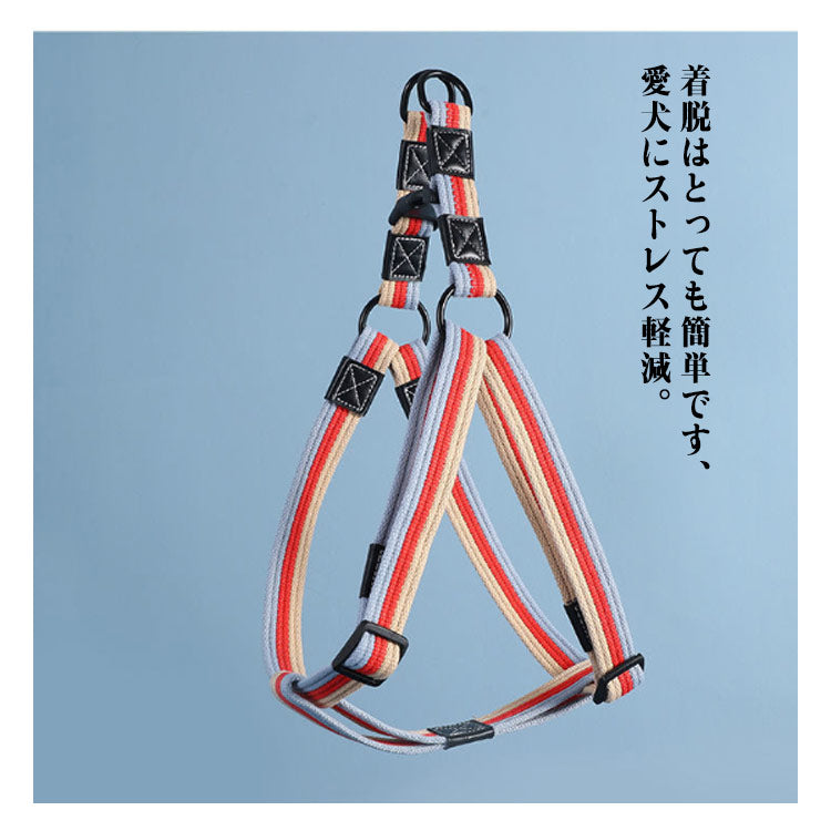 抜けにくい形状の犬用ハーネス。着脱はとっても簡単です、愛犬にストレス軽減。足を通して、背中のバックルを止めるだけ。すぐに出かけられて、お散歩は楽しくなる。調節も可能、軽くて丈夫で長持ち。4サイズございますので小型犬~大型犬まで幅広い犬種に対応しております。