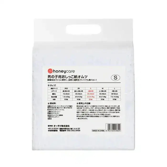<a href="https://www.qoo10.jp/gmkt.inc/Search/brand.aspx?brandno=109151" target="_blank" class="title_brand" id="btn_brand" title="Honeycare">Honeycare</a>ペットの紙おむつ 男の子用 50枚入り 犬用 オムツ マナーウェア 犬用 高齢犬用 紙オムツ 犬 紙おむつ 旅行・介護・トレーニング対応 SSS/SS/S/M/Lサイズ選べる 使い捨て 清潔・快適設計