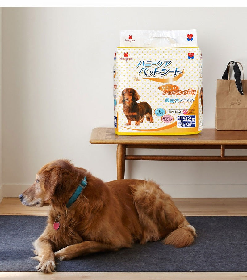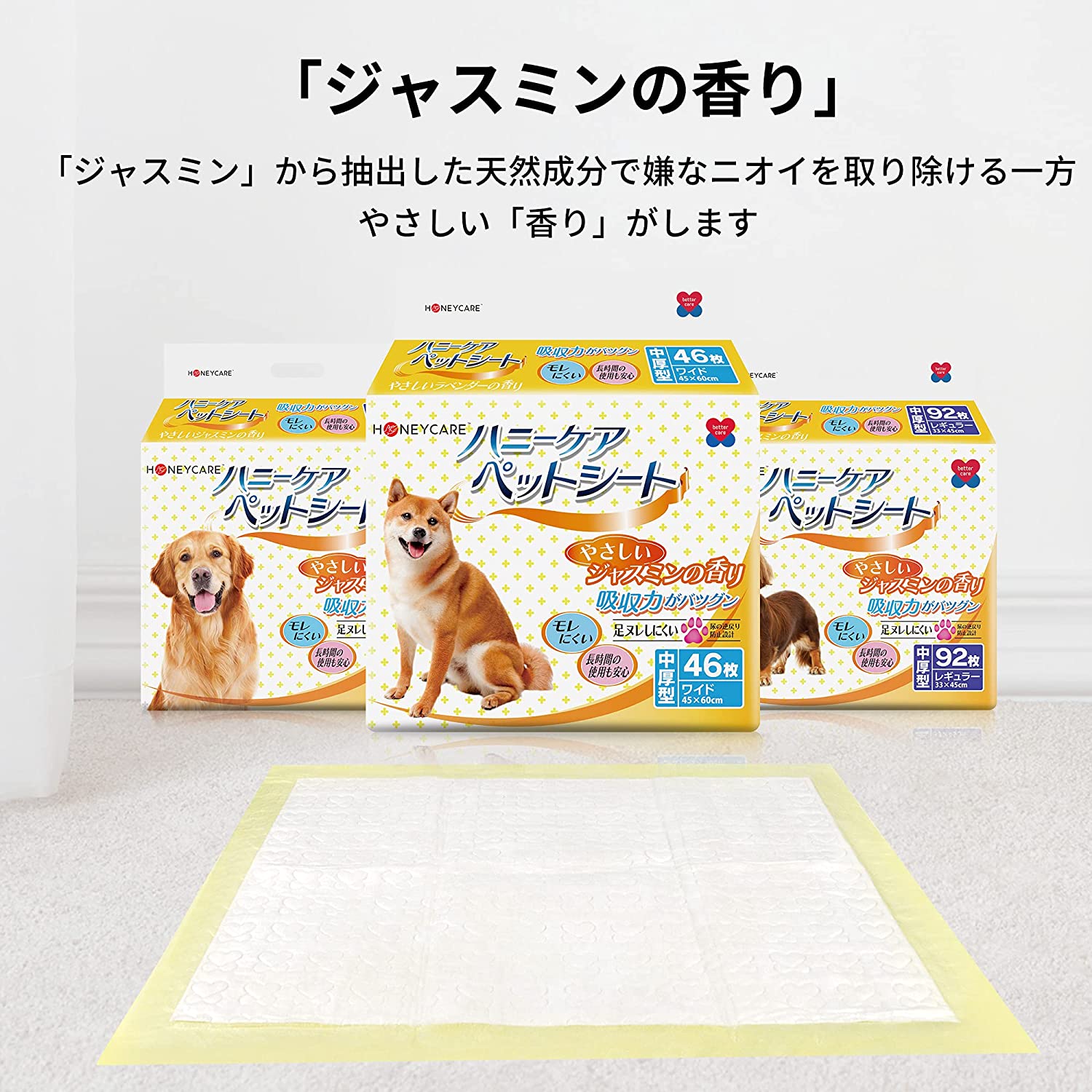 <a href="https://www.qoo10.jp/gmkt.inc/Search/brand.aspx?brandno=109151" target="_blank" class="title_brand" id="btn_brand" title="Honeycare">Honeycare</a>ペットシーツ 中厚型 ジャスミンの香り付き ペットシート厚型 レギュラー92枚*6袋 ワイド46枚*6袋 スーパーワイド20枚*6袋 香り付き サイズの選択