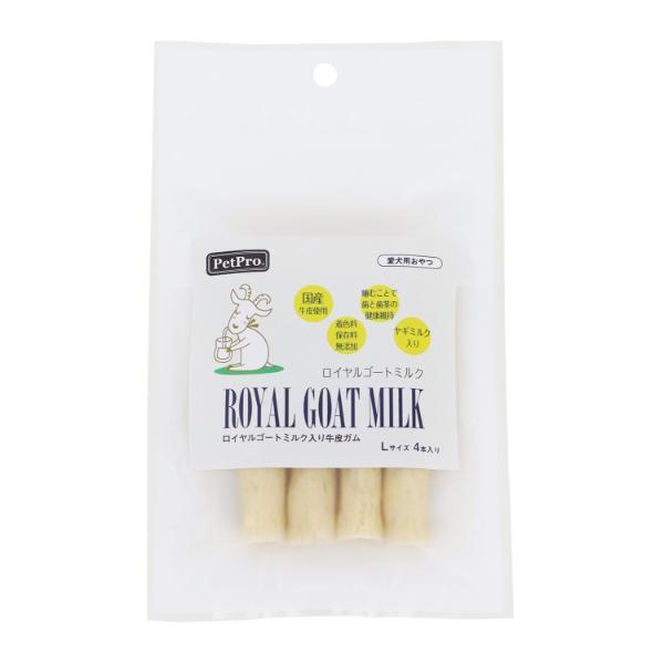 <a href="https://www.qoo10.jp/gmkt.inc/Search/brand.aspx?brandno=112304" target="_blank" class="title_brand" id="btn_brand" title="ペットプロ">ペットプロ</a>ロイヤルゴートミルク入り牛皮ガムL 4本入り
