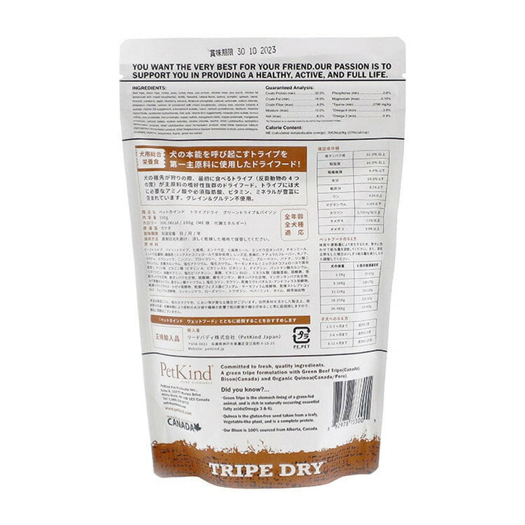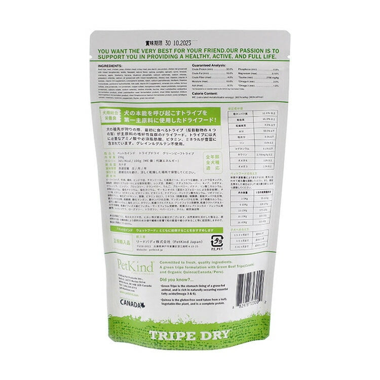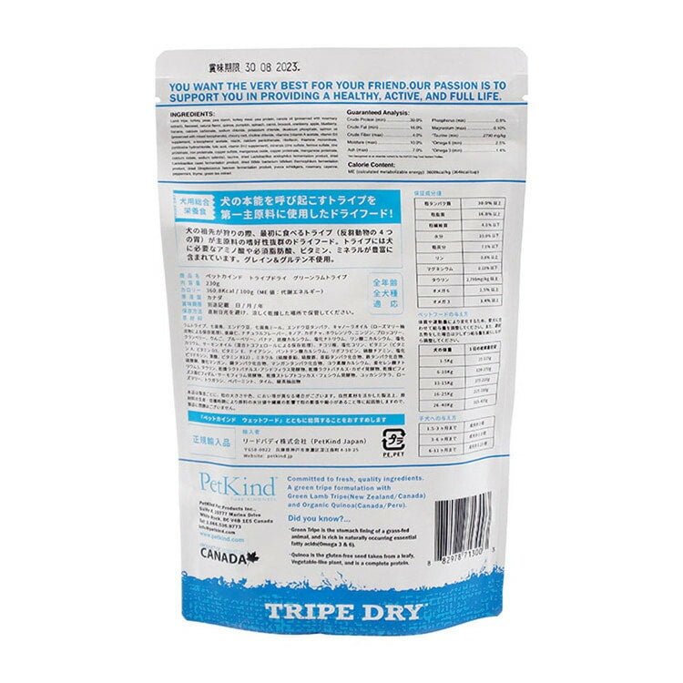 <a href="https://www.qoo10.jp/gmkt.inc/Search/brand.aspx?brandno=120567" target="_blank" class="title_brand" id="btn_brand" title="PetKind">PetKind</a>【人気商品】ドッグフード 犬 フード トライプドライ 230g ペットカインド (B)