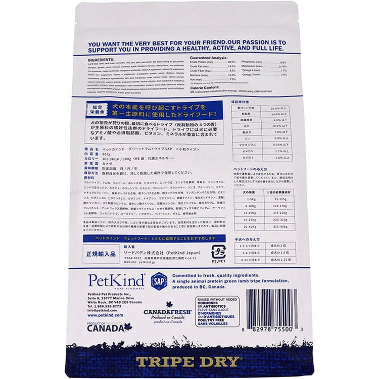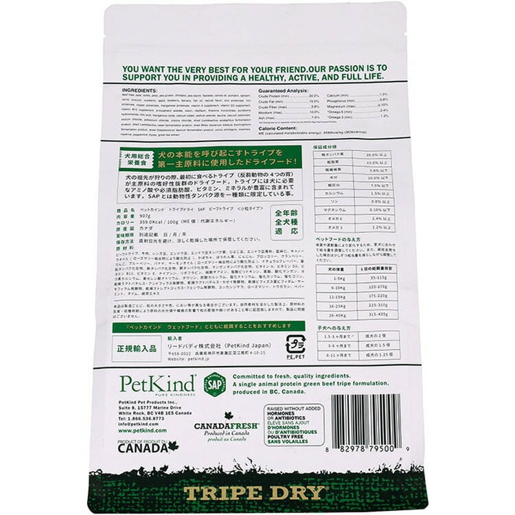 <a href="https://www.qoo10.jp/gmkt.inc/Search/brand.aspx?brandno=120567" target="_blank" class="title_brand" id="btn_brand" title="PetKind">PetKind</a>【人気商品】ドッグフード 犬 フード トライプドライ 907g ペットカインド (B)