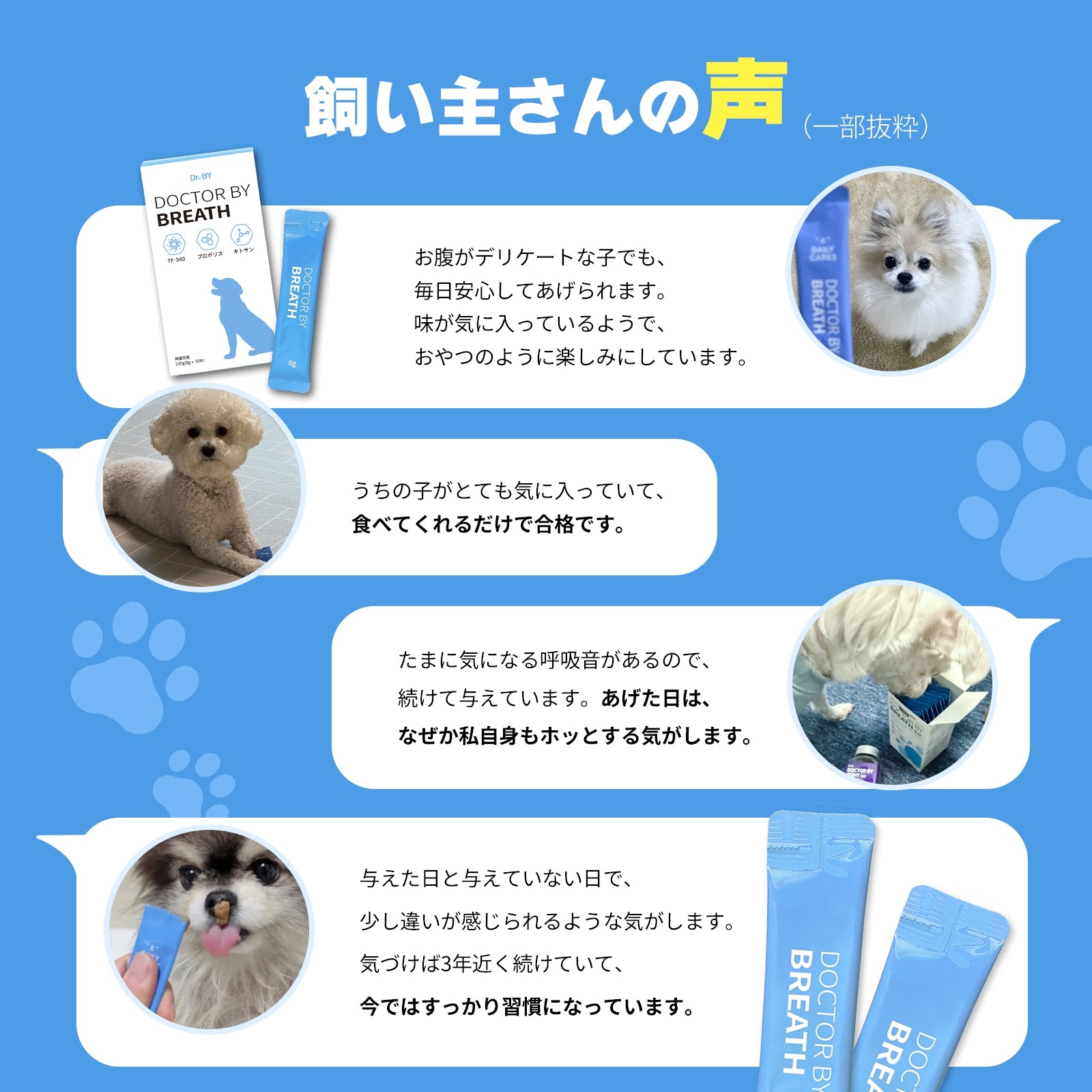 <a href="https://www.qoo10.jp/gmkt.inc/Search/brand.aspx?brandno=120824" target="_blank" class="title_brand" id="btn_brand" title="ドクターバイ">ドクターバイ</a>[公式]ブレス犬気管支サプリメント咳風邪気管虚脱カッカッ免疫力日本特許成分「TF-343」30本 (240g)