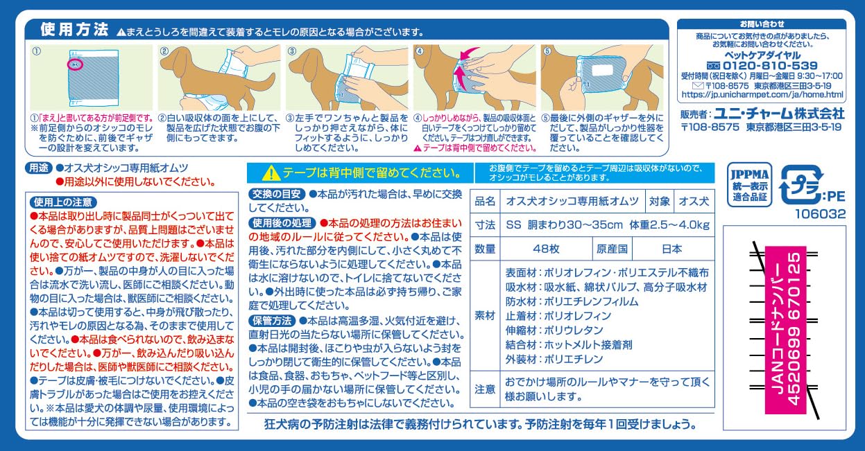 <a href="https://www.qoo10.jp/gmkt.inc/Search/brand.aspx?brandno=124379" target="_blank" class="title_brand" id="btn_brand" title="マナーウェア">マナーウェア</a>ユニ・チャーム 【セット販売】マナーウェア 男の子用 超小~小型犬用 SSサイズ 迷彩・デニム 48枚×2コ
