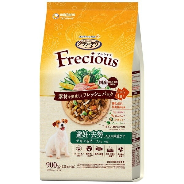 <a href="https://www.qoo10.jp/gmkt.inc/Search/brand.aspx?brandno=18151" target="_blank" class="title_brand" id="btn_brand" title="ユニ・チャーム">ユニ・チャーム</a>グランデリ フレシャス 避妊去勢した犬の体重ケア チキン&ビーフ入り 900g