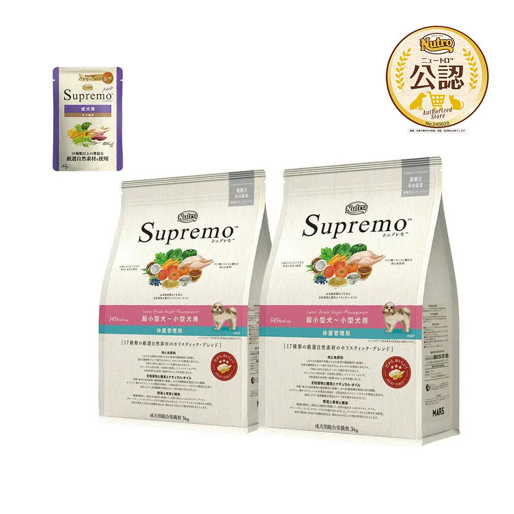 ニュートロ シュプレモ 超小型犬~小型犬用 体重管理用 3kg×2袋 + パウチ 1袋 おまけ付