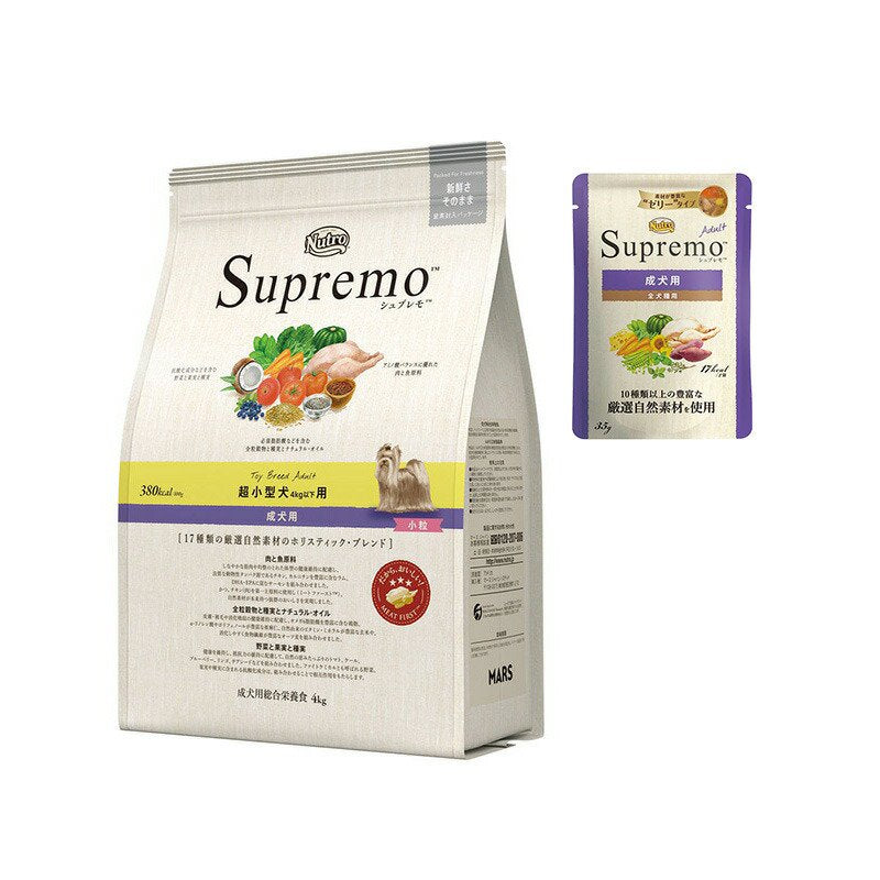 Supremo 超小型犬4kg以下用 成犬用 4kg + パウチ 1袋 おまけ付 | |