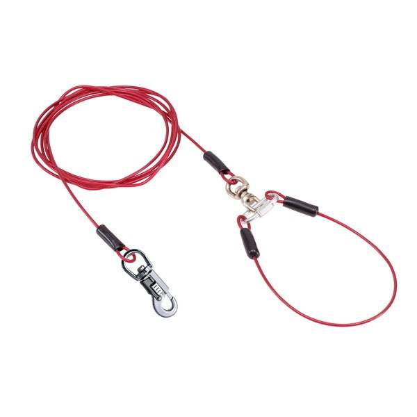 取りつけ用ワイヤーを使用して長時間ケイ留する場合は、破損等がないか定期的に確認してください。また、犬が届かない高さにケイ留してください。