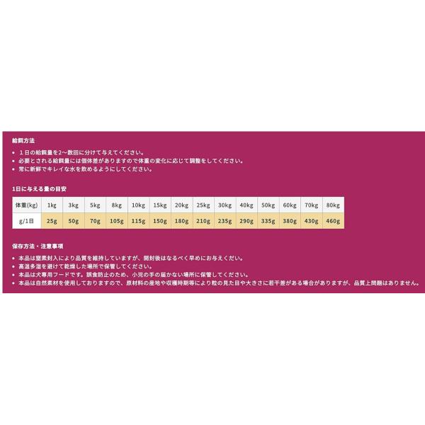 健康な皮膚と美しい被毛の維持に。 成犬の敏感な動きに必要な良質なタンパク質を含むことで筋肉の維持に配慮。必須脂肪酸であるオメガを含むことで美しい毛艶や健康な皮膚に配慮して健康をサポートします。