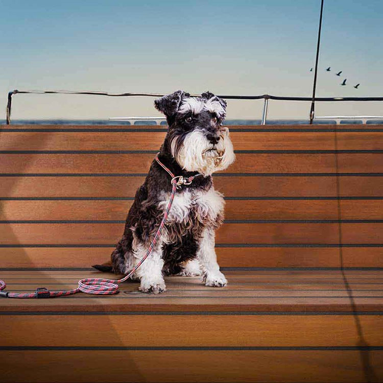クイックリリースできる特殊なステンレス製クリップと登山用ロープを使用した丈夫でユニークな小型犬用リード。
