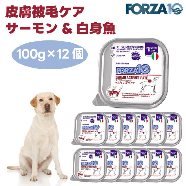 Forza10 アクティウェット デルモサポート 皮膚被毛ケア サーモン&地中海の白身魚 パテ 100gx12個 ドッグフード 犬 餌 フォルツァ10