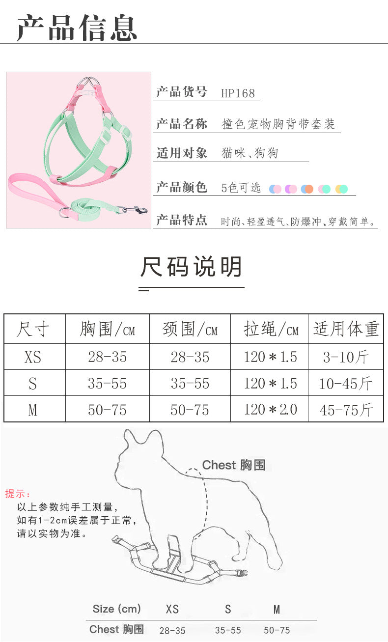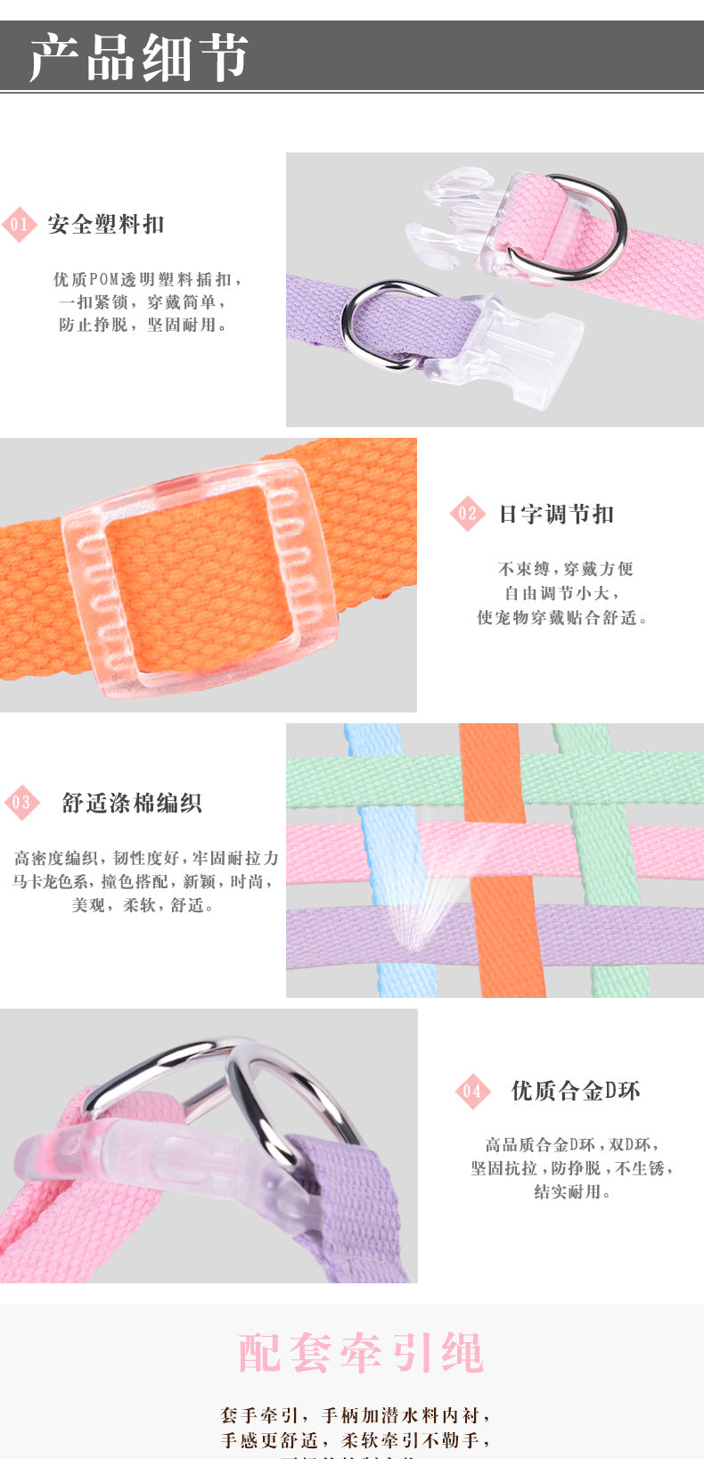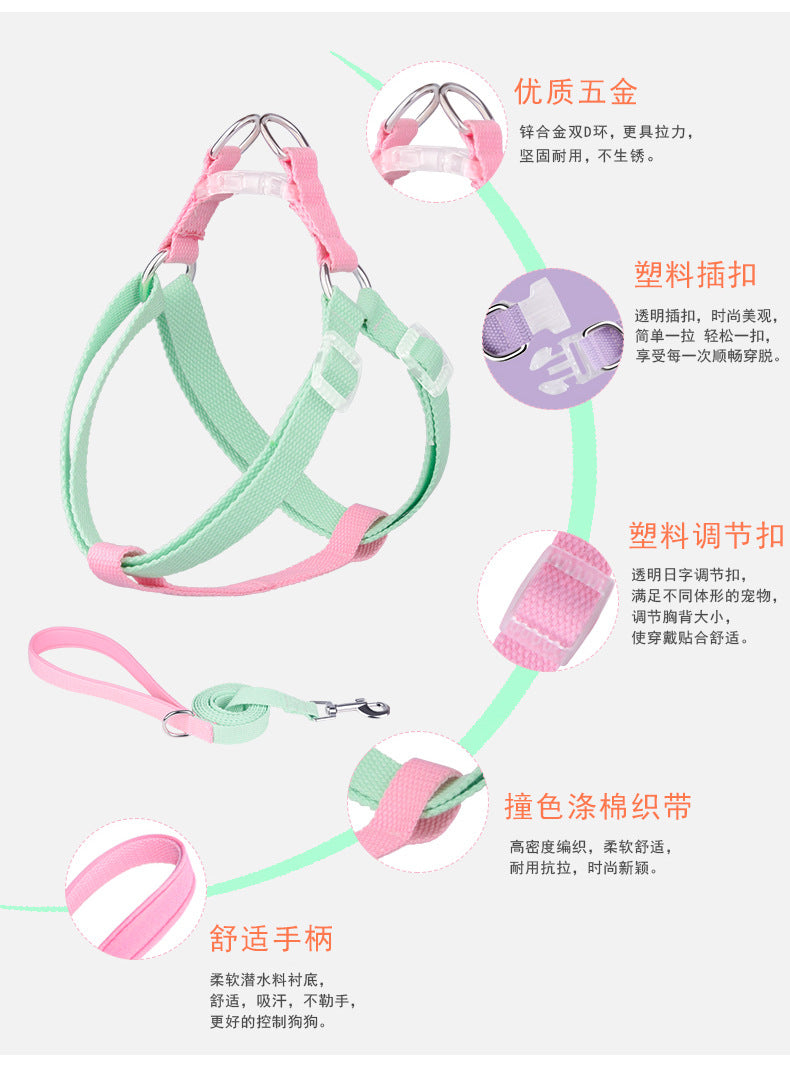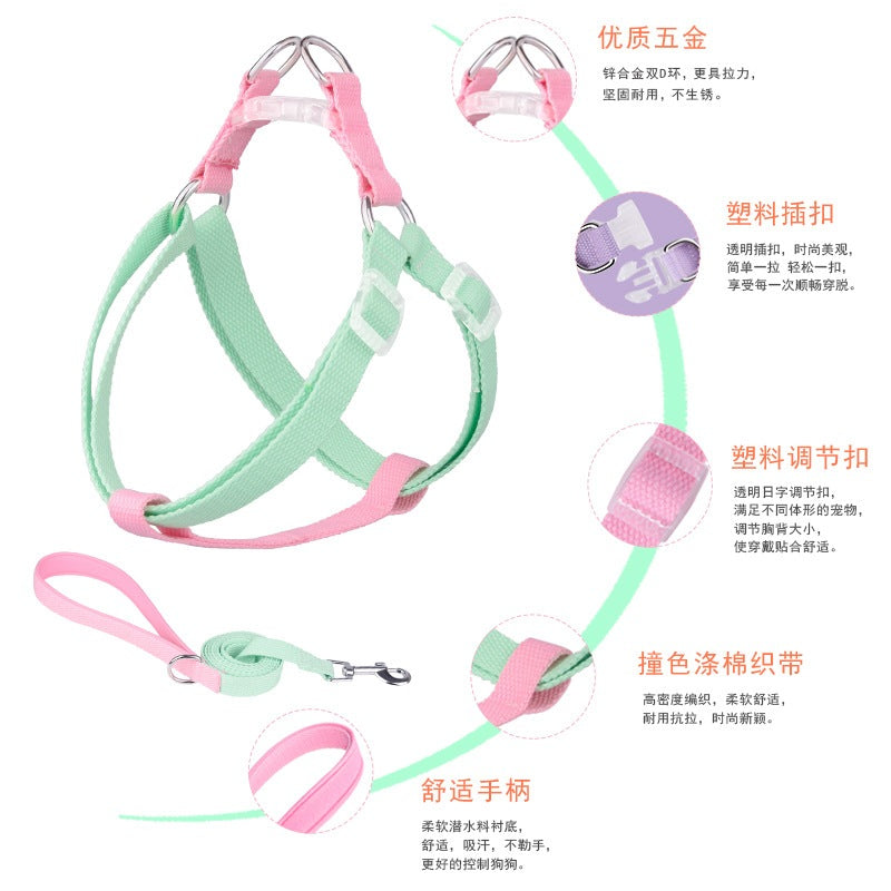 【IRC】コントラストカラー ペットリーシュ マカロン カラーマッチング ペットチェストストラップ 防爆 赤 犬 リーシュ ヒート