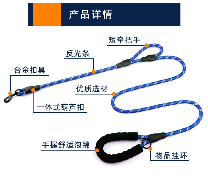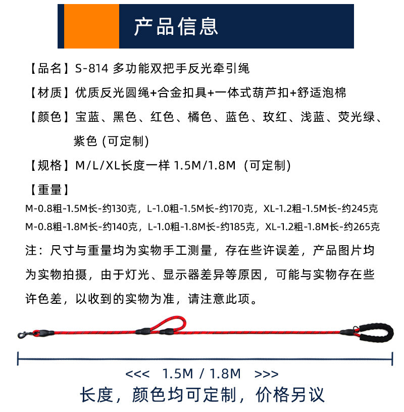 【IRC】爆発反射ペット犬の鎖ダブル ハンドル防爆赤い犬の鎖中型および大型犬の鎖