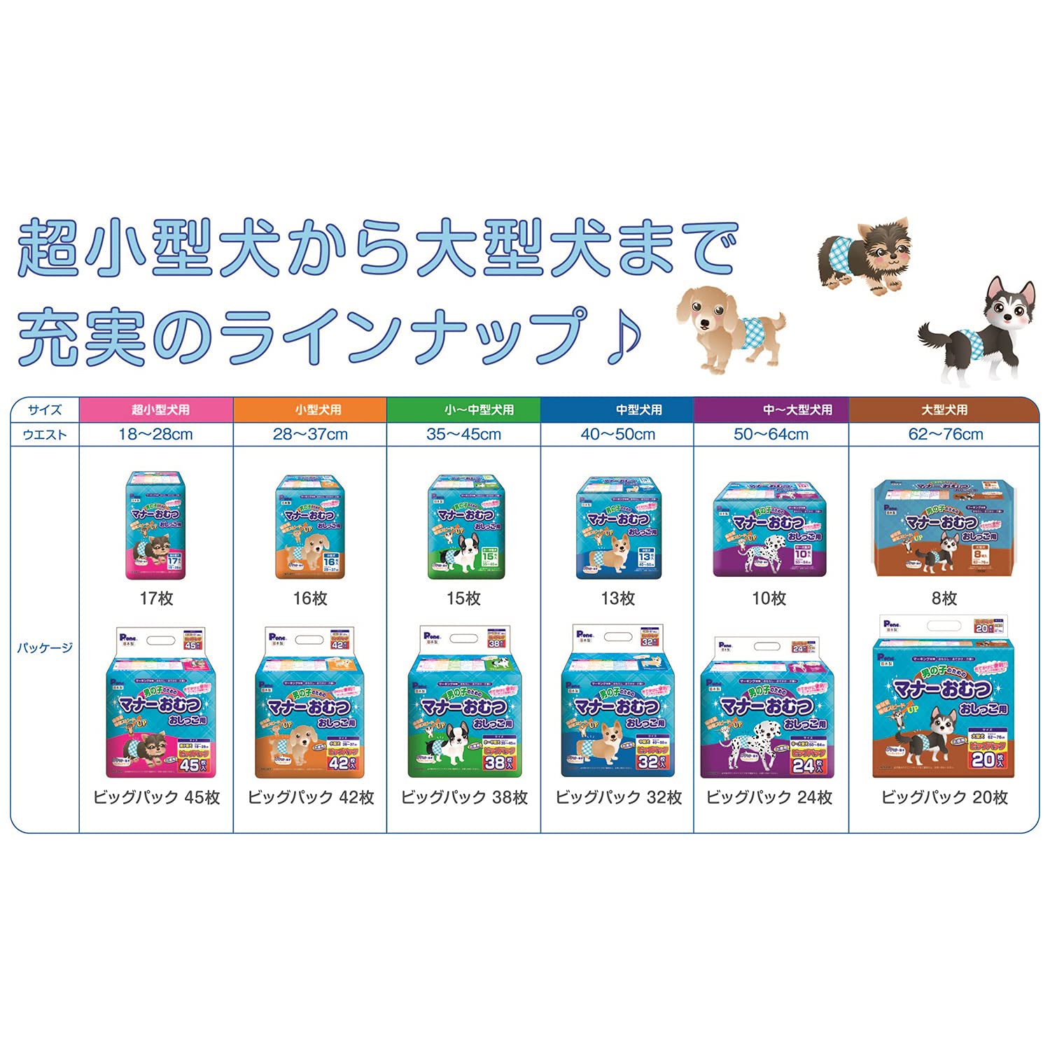 Pone P.one 通販用 男の子のためのマナーおむつ おしっこ用 ビッグパック 超小型犬 45枚入×2個 (ケース販売)