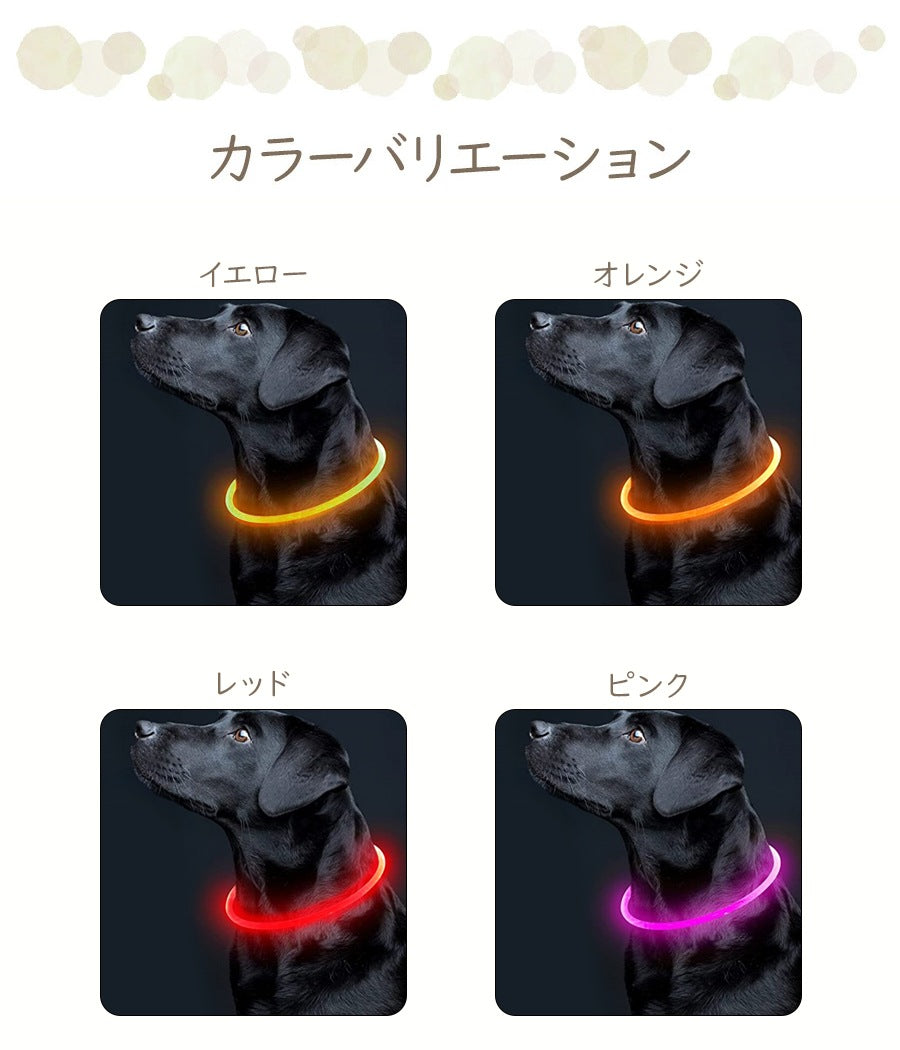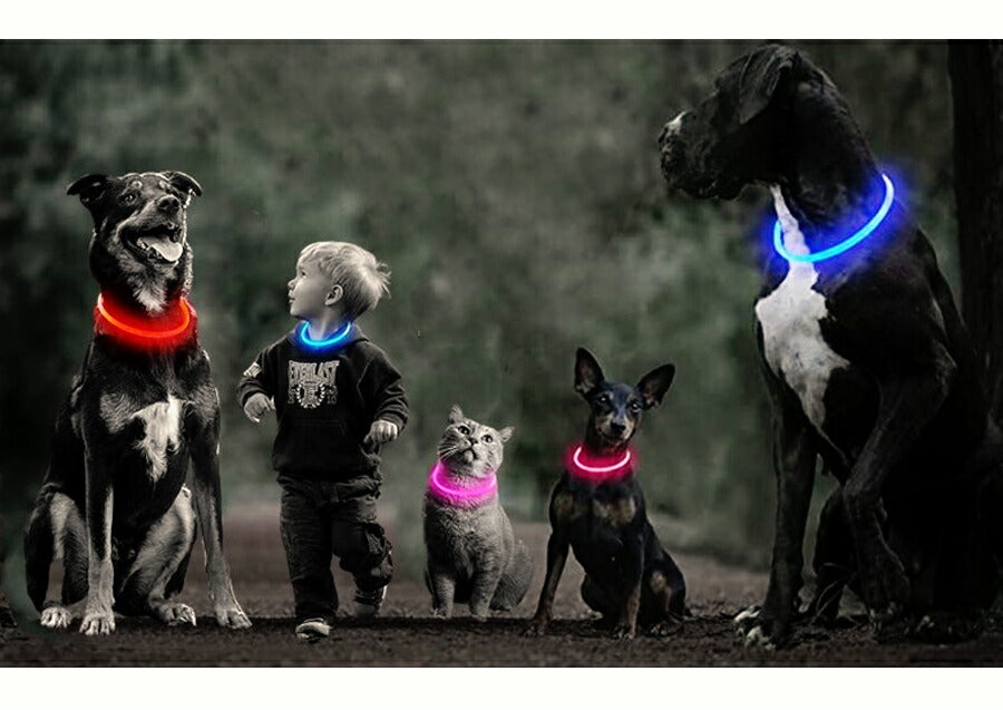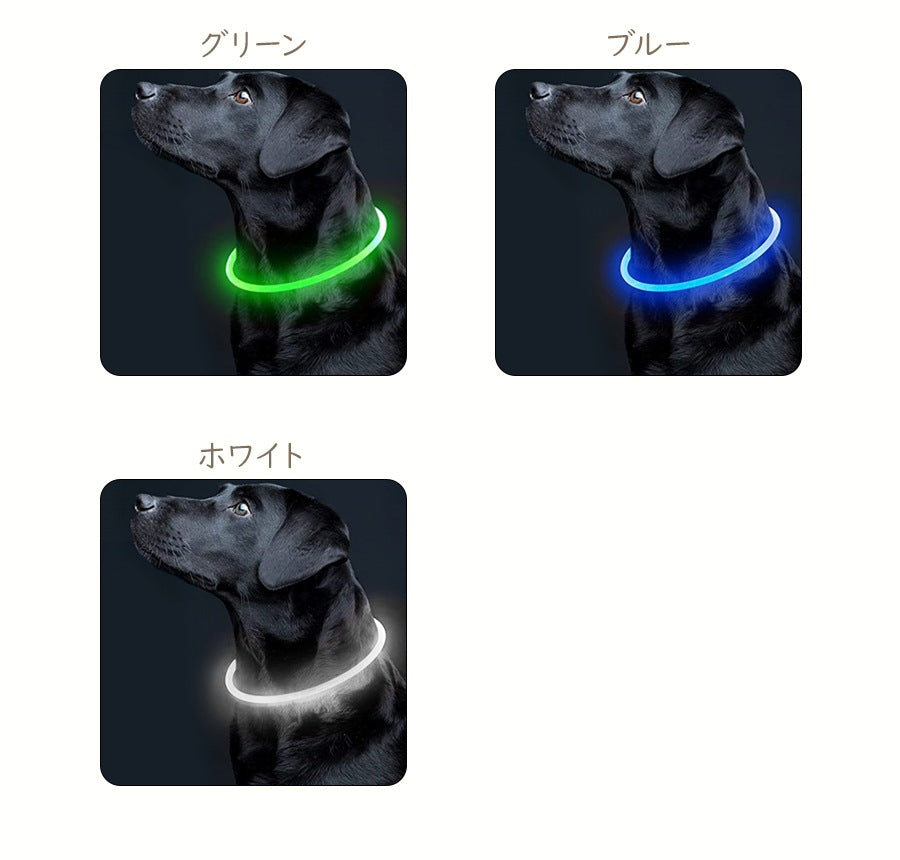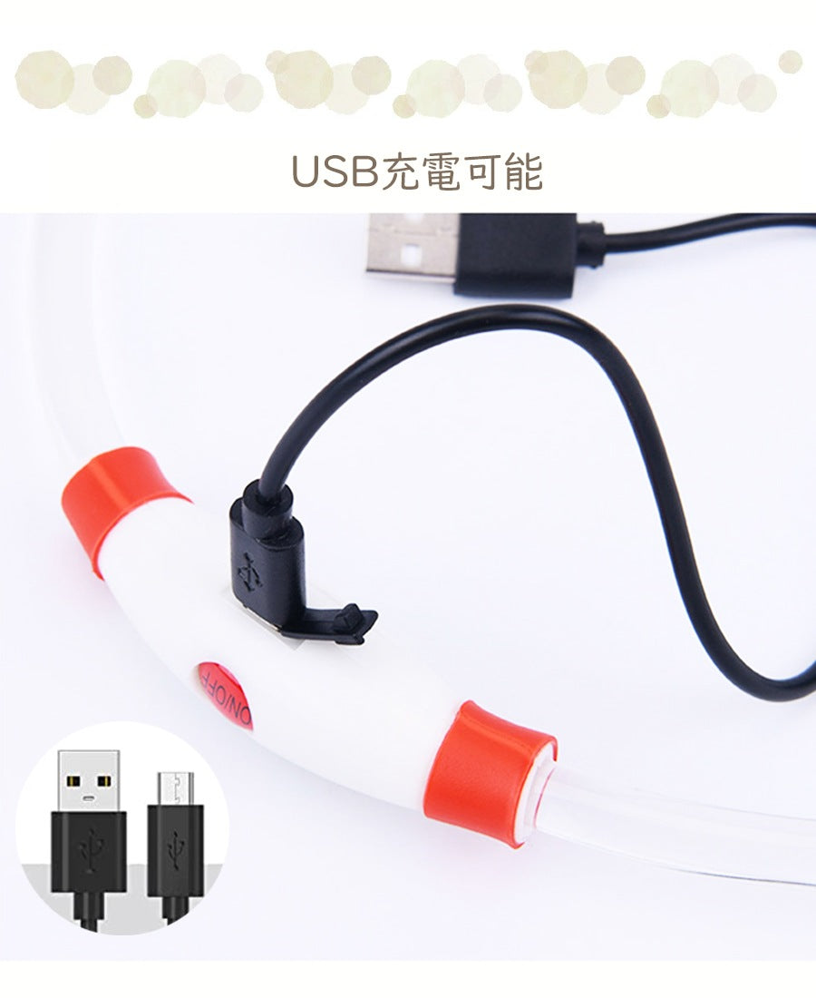 USB充電式の光る首輪 子犬 中型犬 お散歩にぴったり 発光 LED首輪